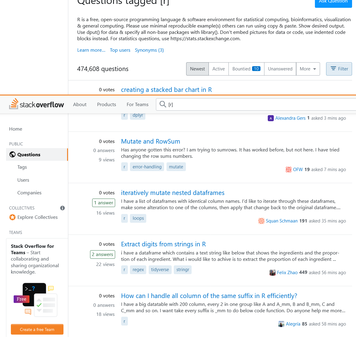Un foro muy famoso es Stackoverflow, allí hay preguntas y soluciones a problemas de programación e incluso estadísticos.
