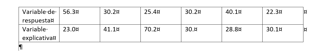 Hay que recordar que para R las columnas son variables y las filas observaciones. Así que lo que necesitaremos es tener dos columnas para hacer el modelo que nos piden. Como ya vimos antes lo podemos lograr de diferentes maneras. Vamos a poner aprueba lo aprendido y primero generemos los vectores