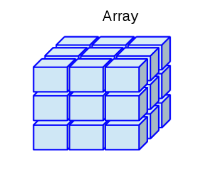 El array es un tipo matriz, pero con más de dos dimensiones 😵🤯. Las array, al igual que las matrices, solo pueden ser formadas por objetos del mismo tipo. Podemos usar la función array y definir filas, columnas y tercera dimensión