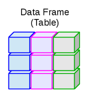 Los data frames al igual que las matrices son objetos de dos dimensiones, pero pueden tener diferentes tipos de datos. Ésta característica los convierte en uno de los objetos más usados para muchos tipos de análisis, por su versatilidad. En general se puede entender las filas de un dataframe como observaciones, casos o individuos y las columnas como variables.